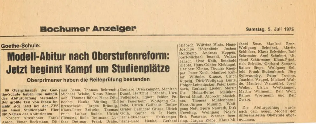 Daraus wiederum entwickelte sich unter den Schülern schnell der Begriff der “Zeche Goethe”, in der man arbeitete, sich aber nur sehr unregelmäßig sah.